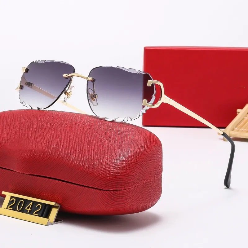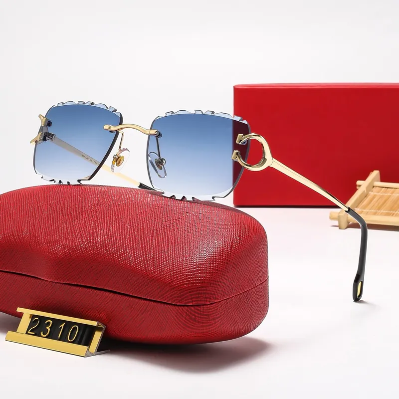 Designer sunglasses mens woman rimless frame protection lens buffalo horn sunglasses driving accessories eyeglasses