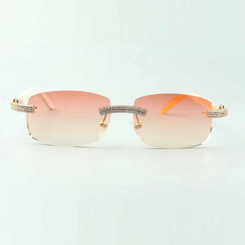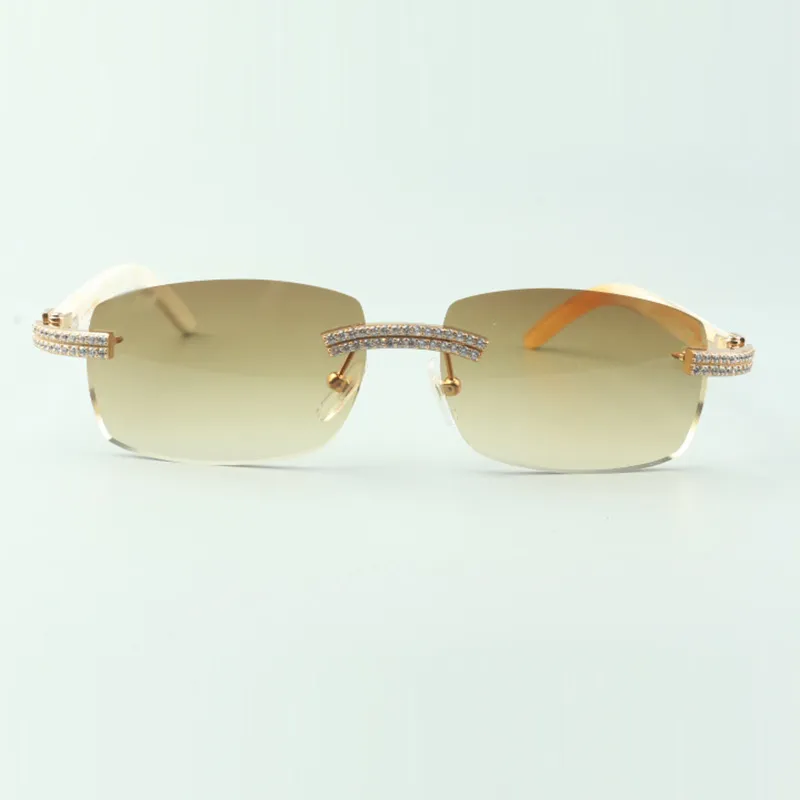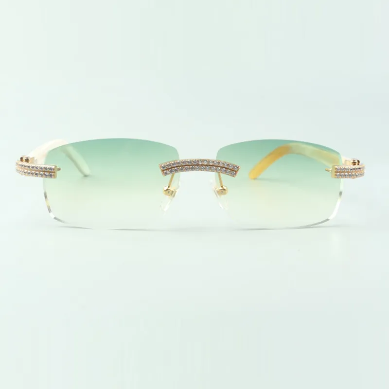 Direct sales double row diamond buffs sunglasses with white buffs horn legs designer glasses size 58-18-140mm