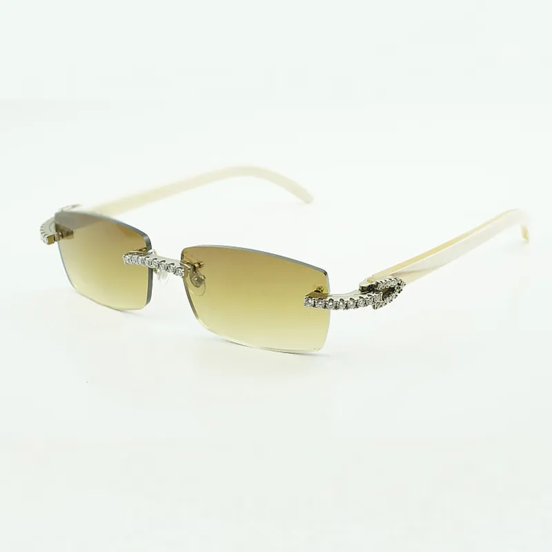 frameless buffalo diamond sunglasses with natural white buffalo horn and 56mm lenses for men and women