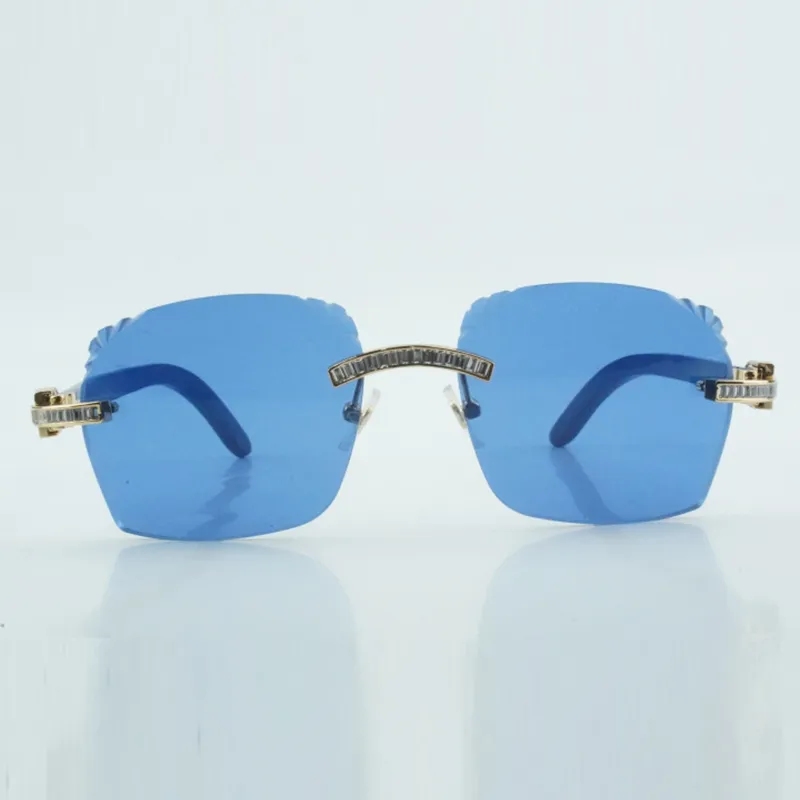 Experience style and craftsmanship with these Rectangular Diamond Sunglasses, designed with finely detailed diamond-cut lenses that reflect light beautifully from every angle. The standout feature is the natural blue wood legs, each carved from authentic wood with its own unique grain, giving every pair a distinct and premium finish.