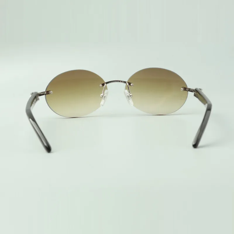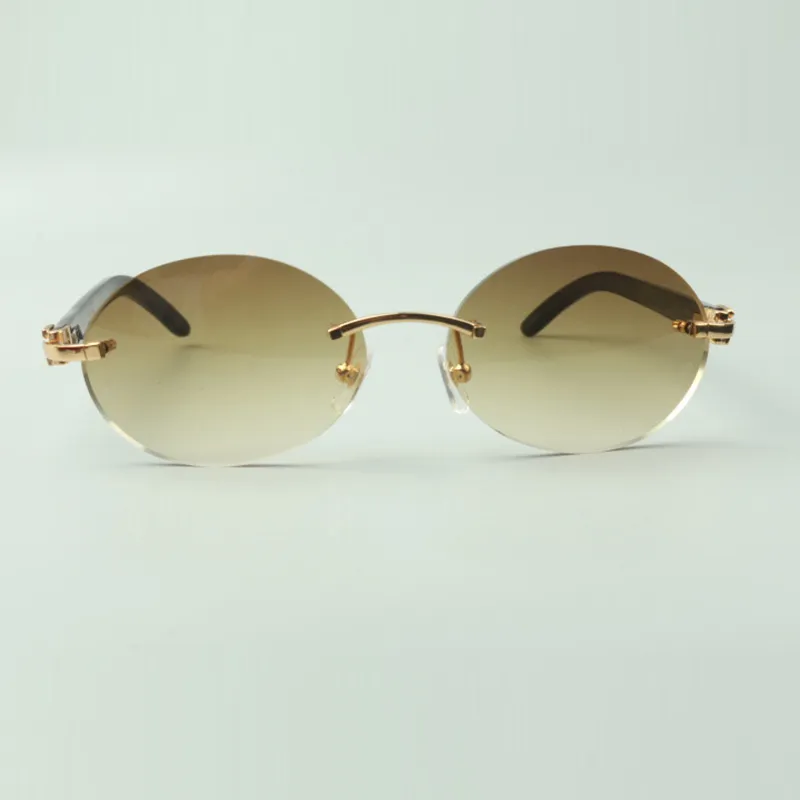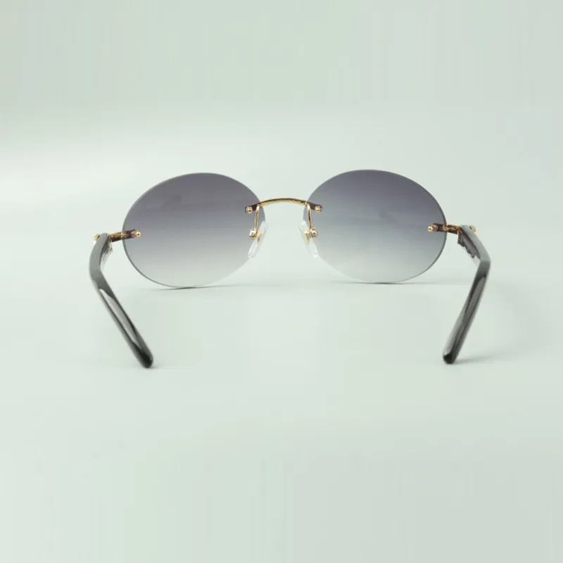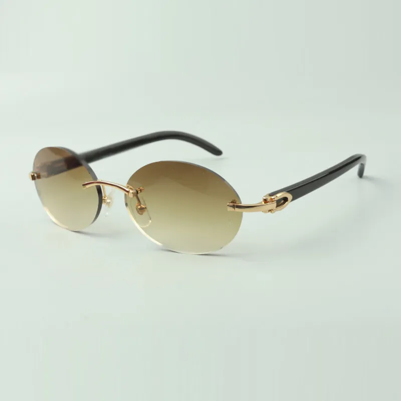 Retro oval buffs sunglasses with natural black buffalo horn sticks and 58mm lenses