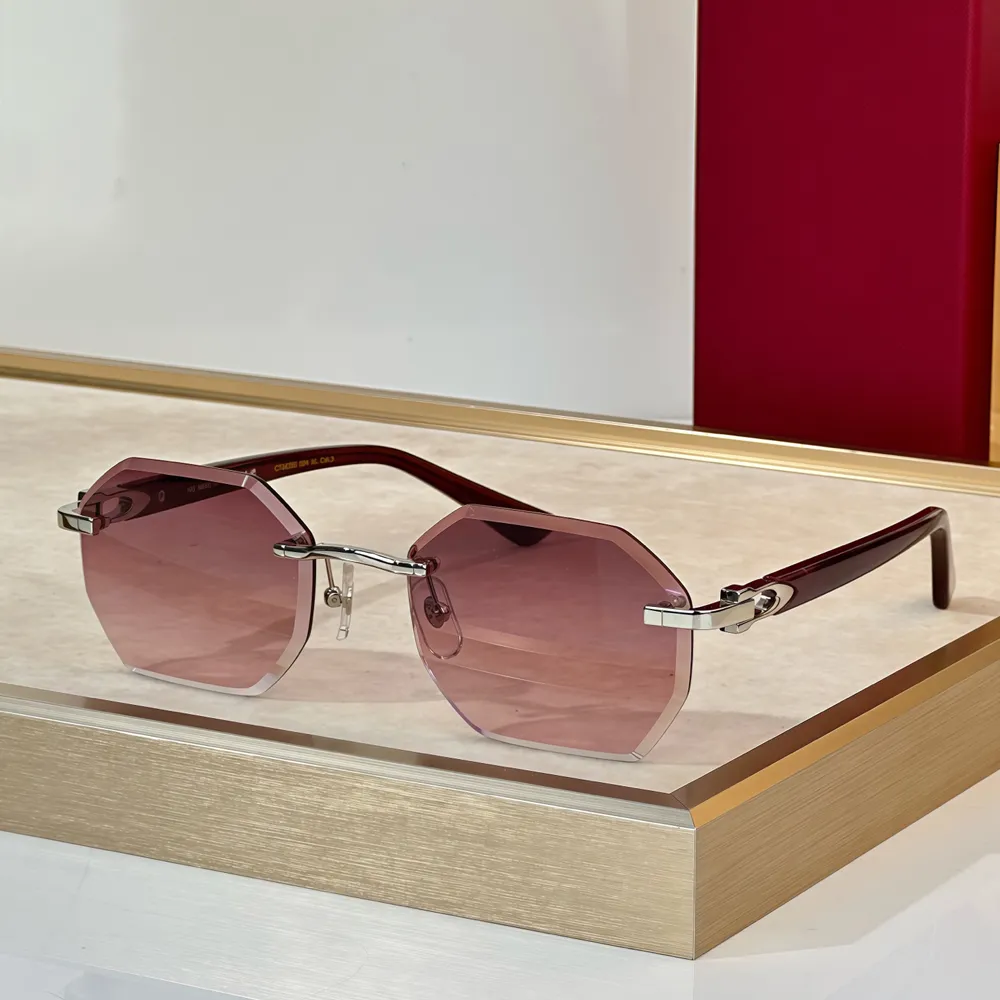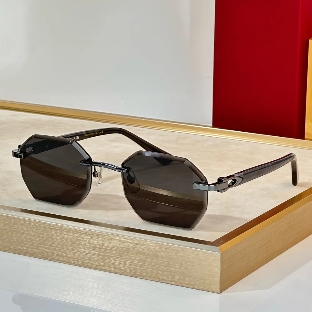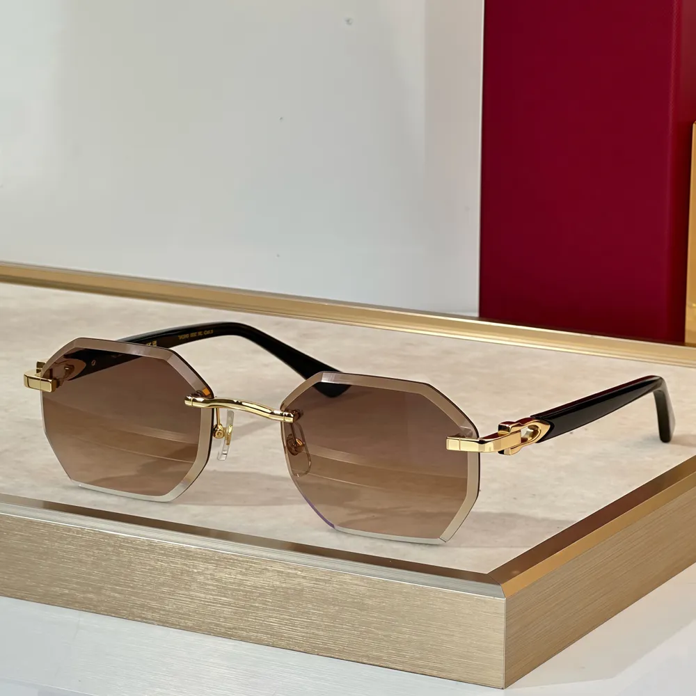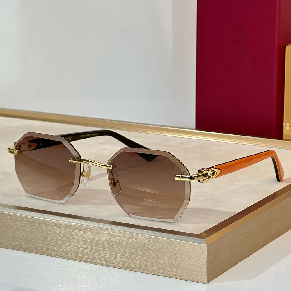 Rimless Polygons Sunglasses Orange Gold/Brown Gradient UV 400 Protection Lens Designer Sunglasses Men Summer Shades