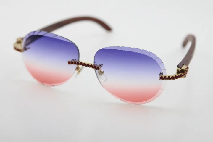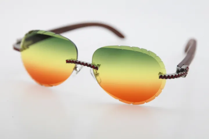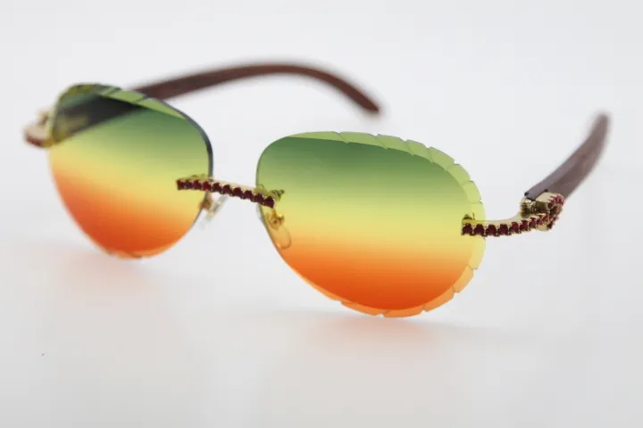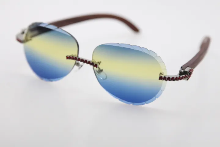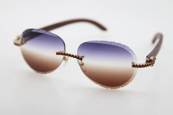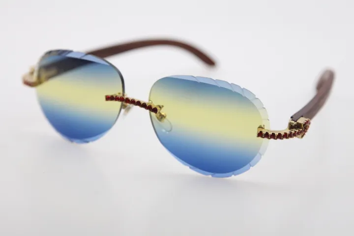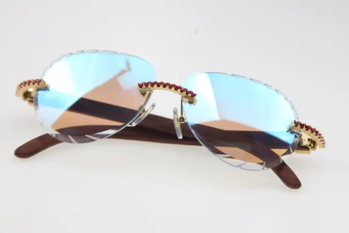 Rimless smaller big stones sunglasses wood glasses mirror lens shield high quality C decoration optical unisex