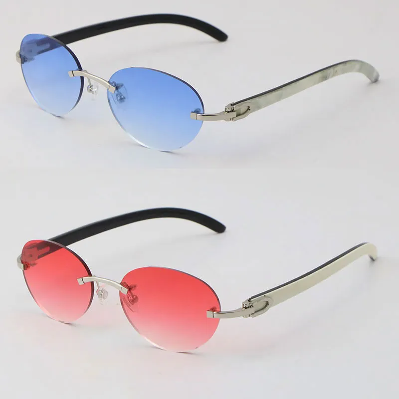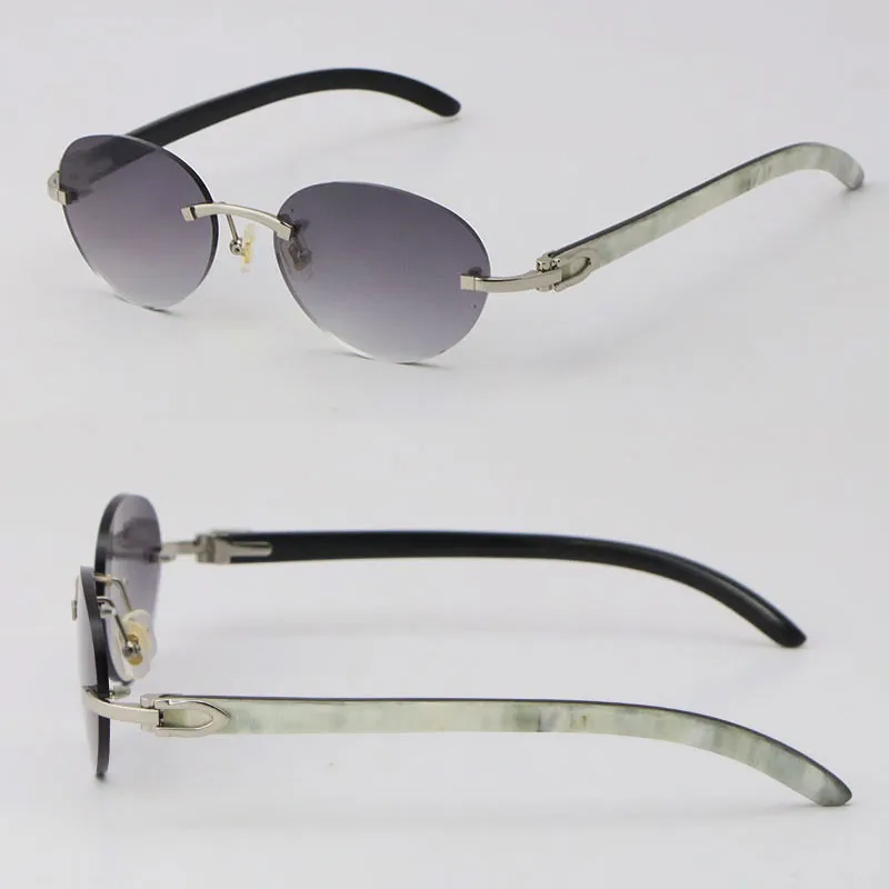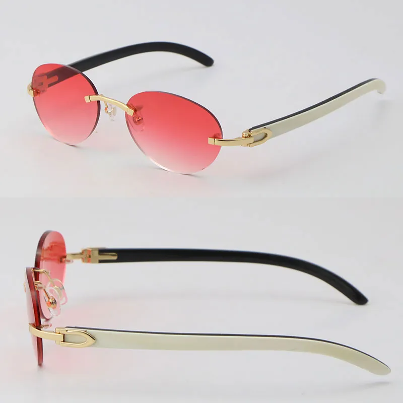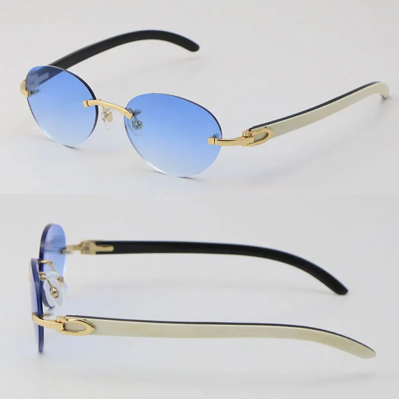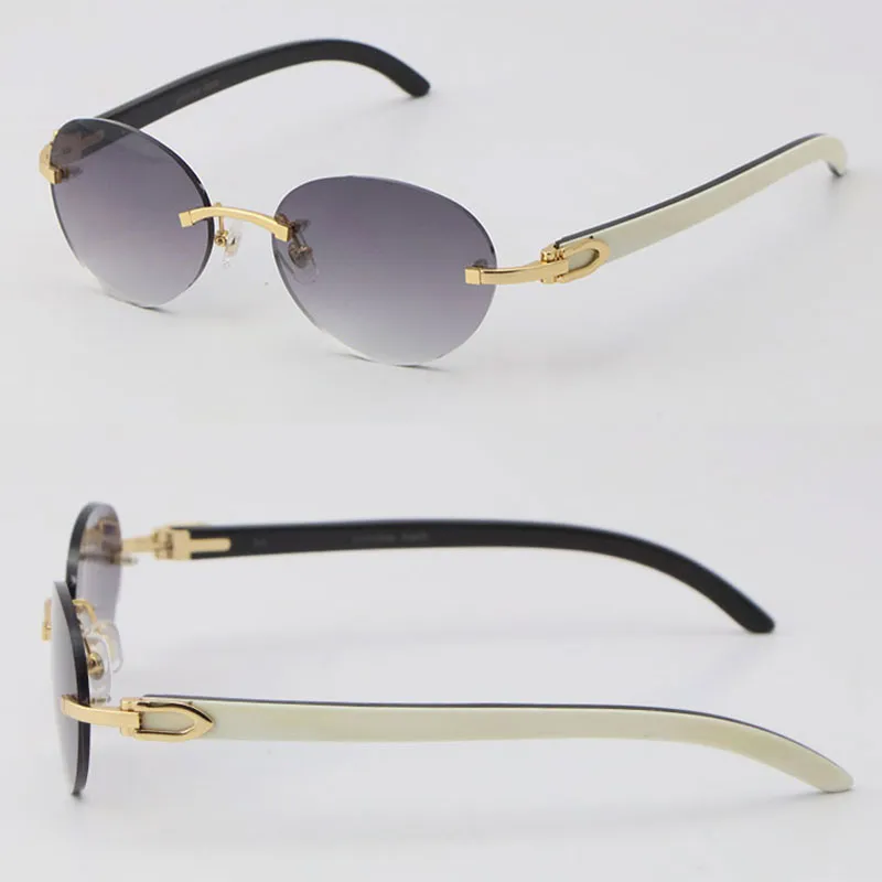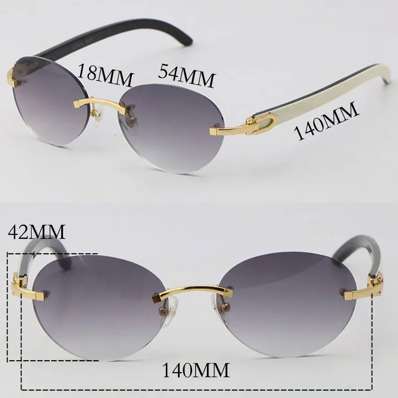 luxury white inside black buffalo horn sunglasses metal rimless women design classical model sun glasses man fashion 18k gold 4 round frame size 54